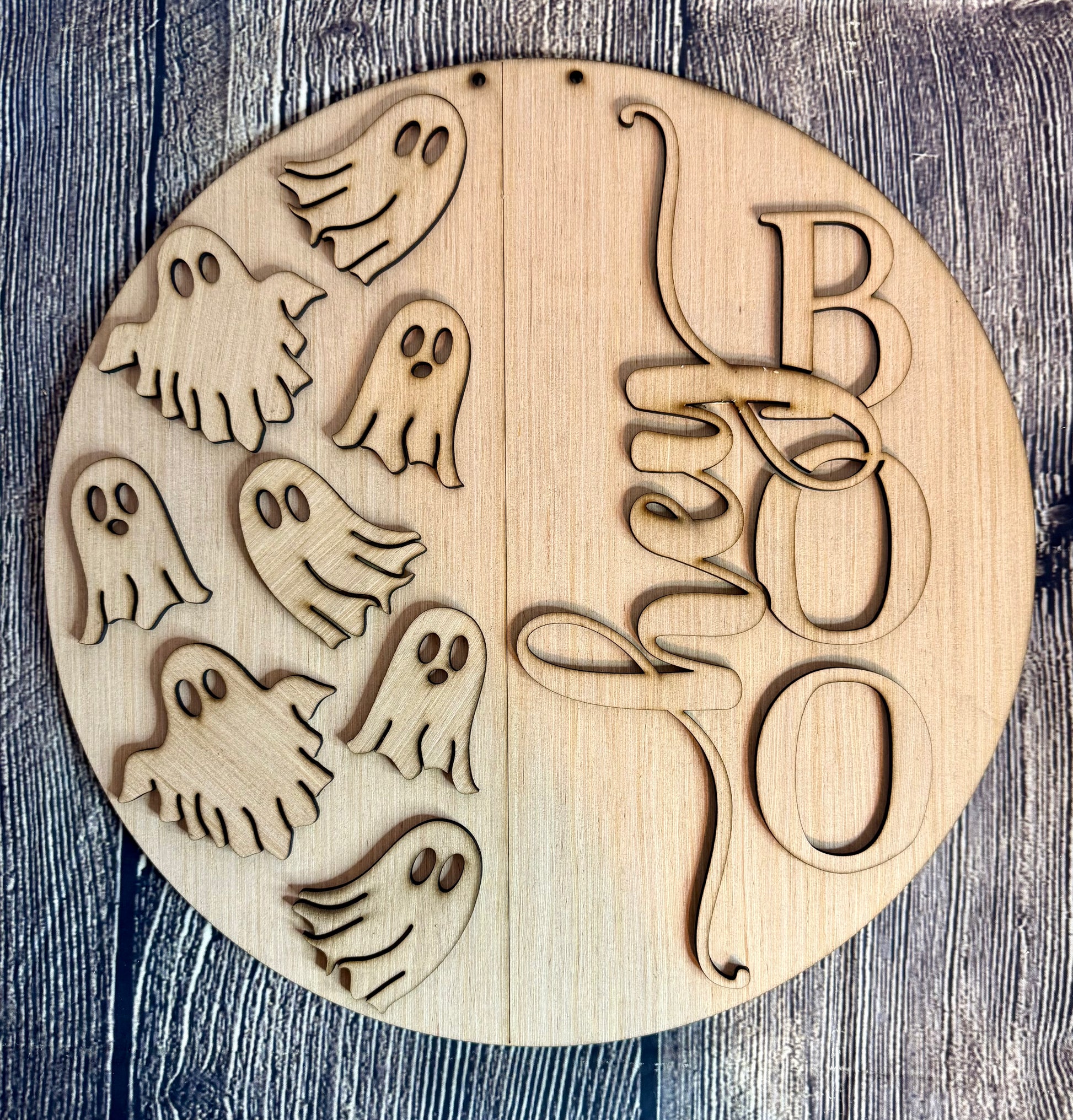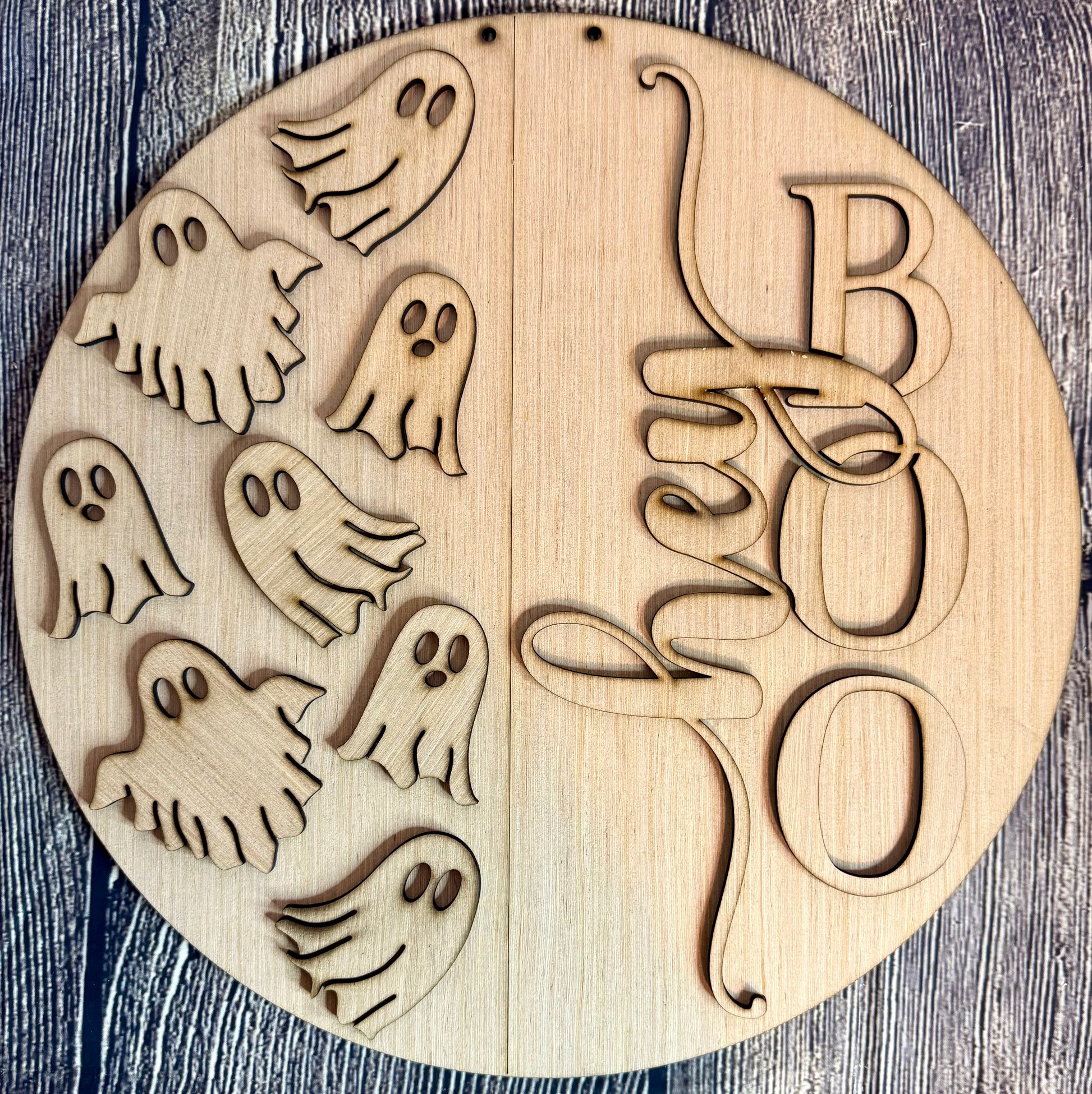 Boo Ghosts Halloween Wood Door Hanger Blank