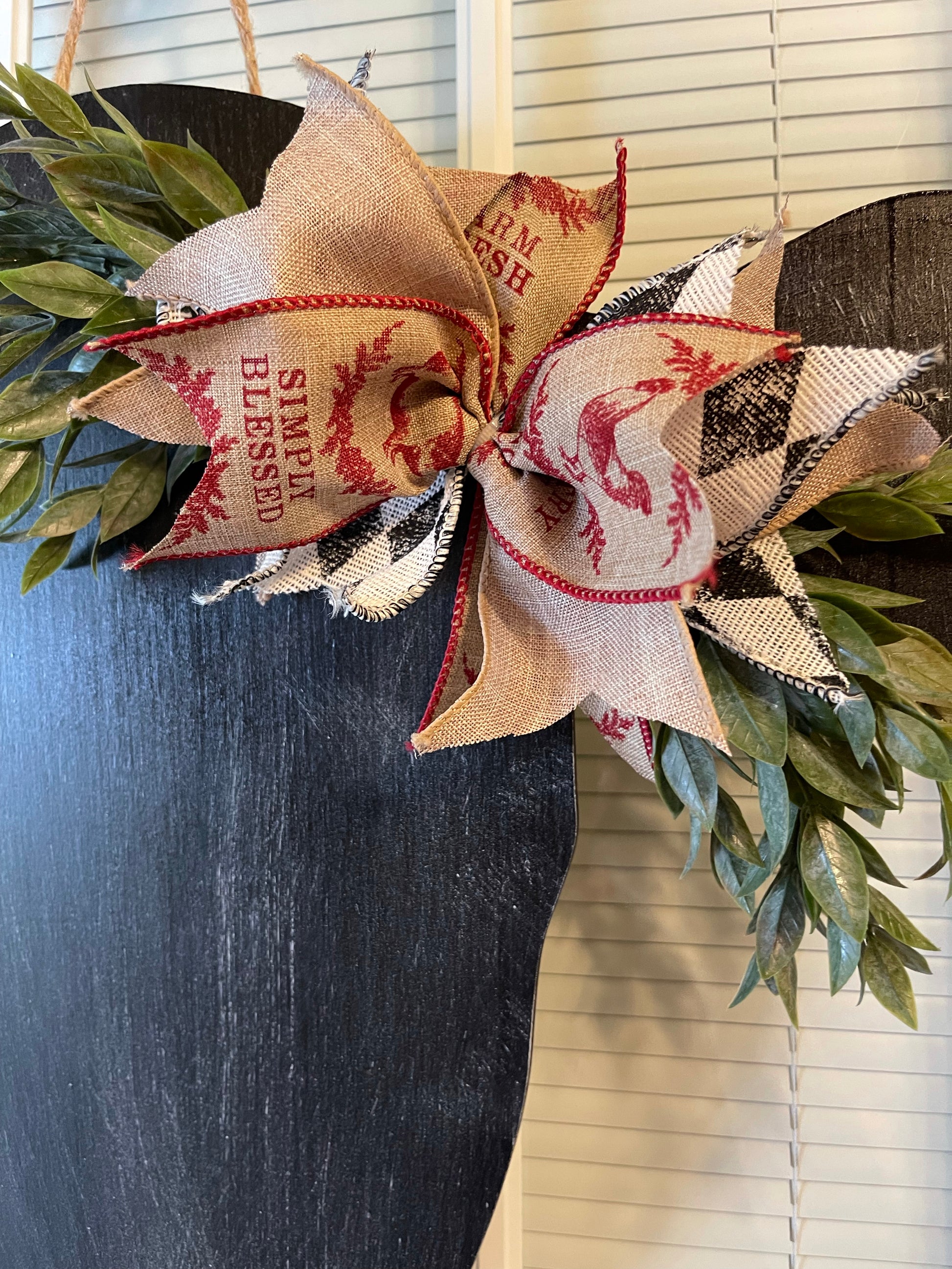 The bow and greenery on your door hanger may vary from the one pictured. We will use what we have available. If you have a color theme preference for your bow, please let us know.