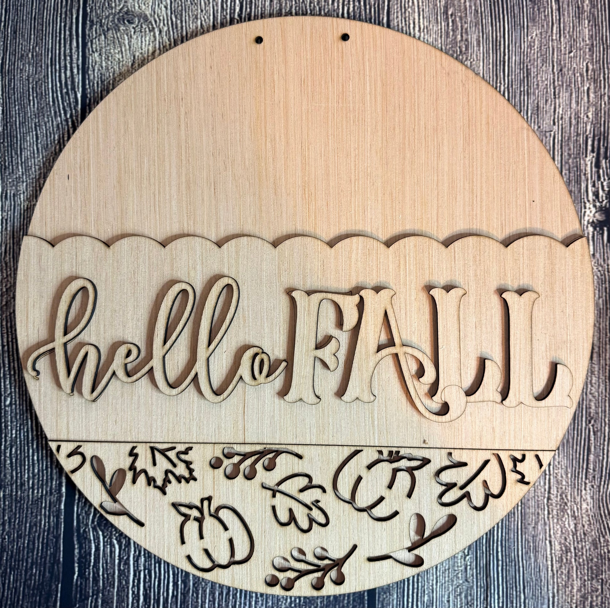 Hello Fall Pumpkin Leaves Wood Door Hanger Blank