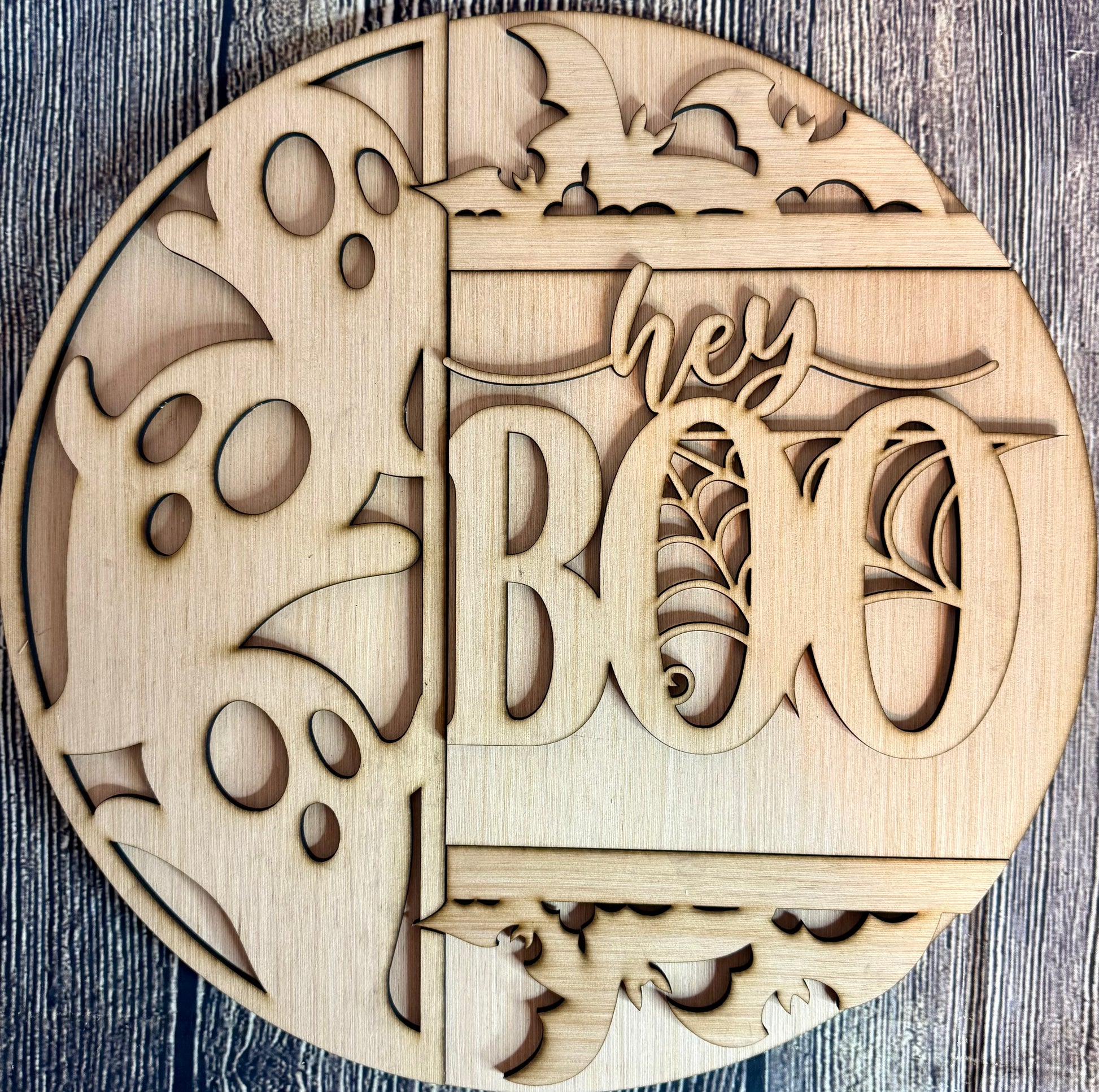 Hey Boo Ghost Halloween Wood Door Hanger Blank