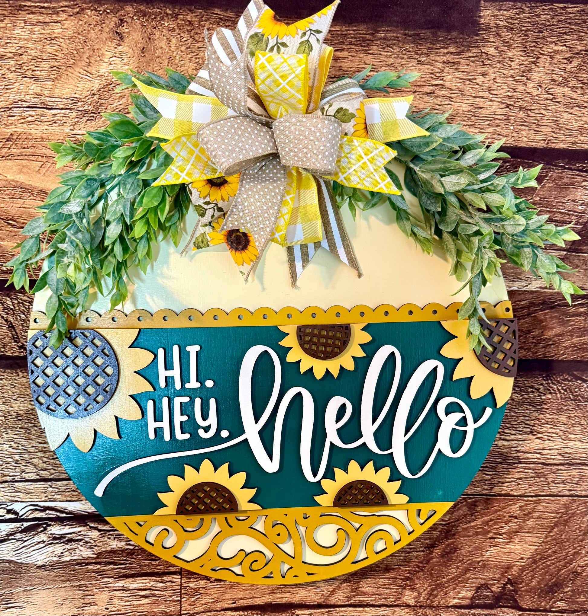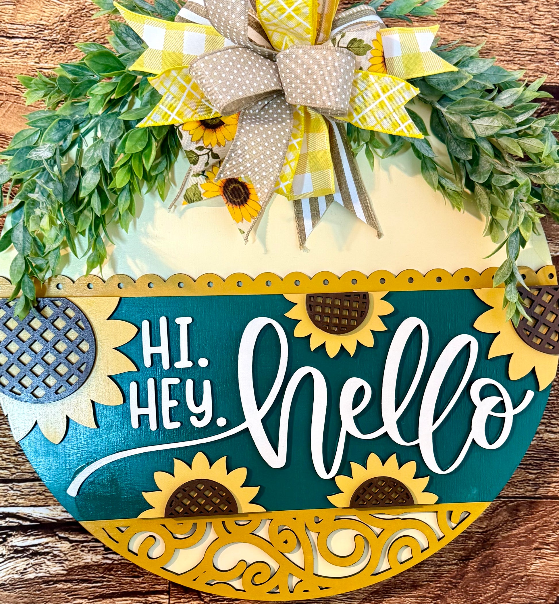 Hi Hey Hello Sunflower Wood Fall Summer Door Hanger