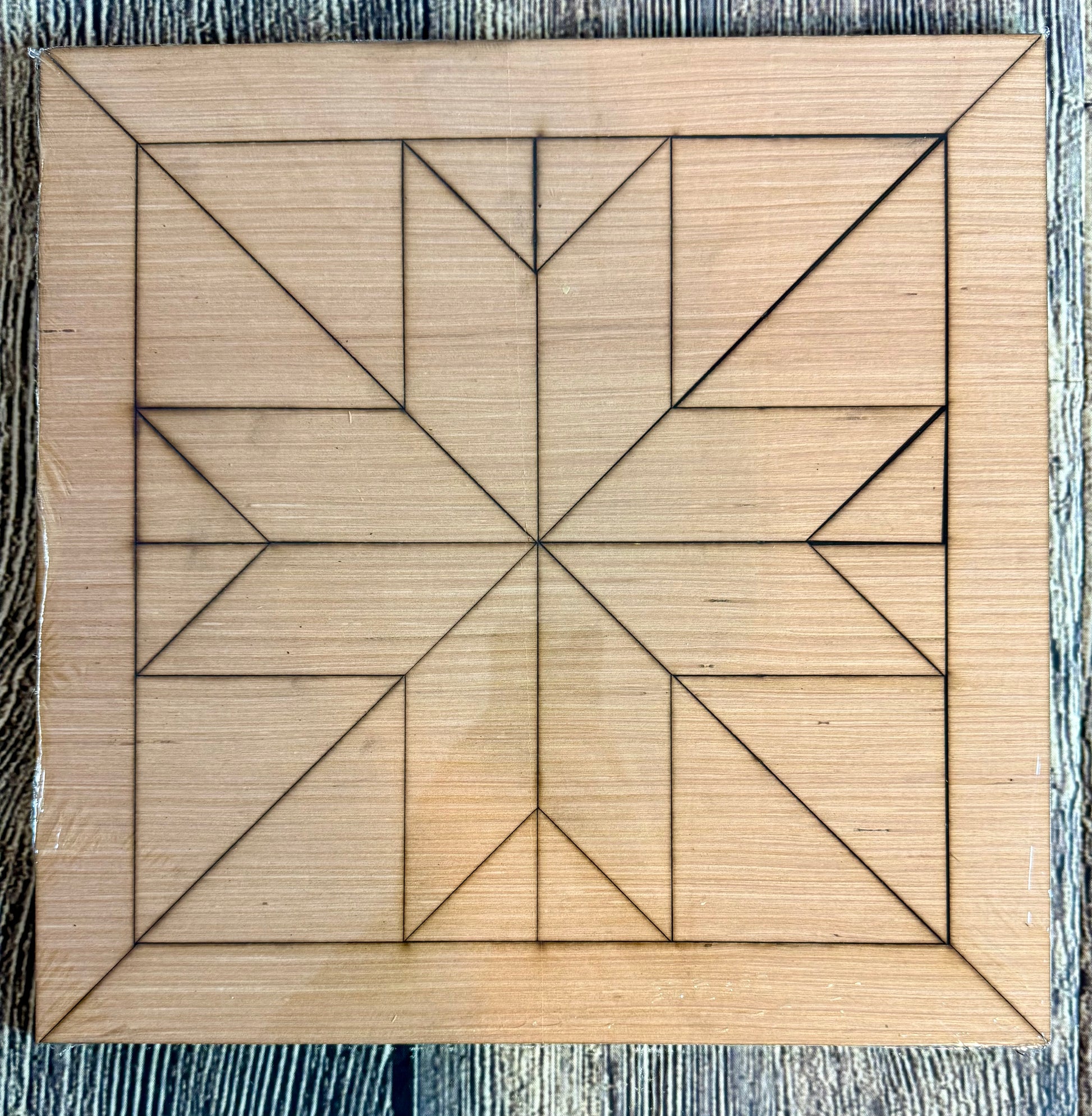Each kit comes with a base that has the pattern etched on it for easy placement and individual pieces that make up the design. Once painted or stained you will simply glue the pieces to the base.