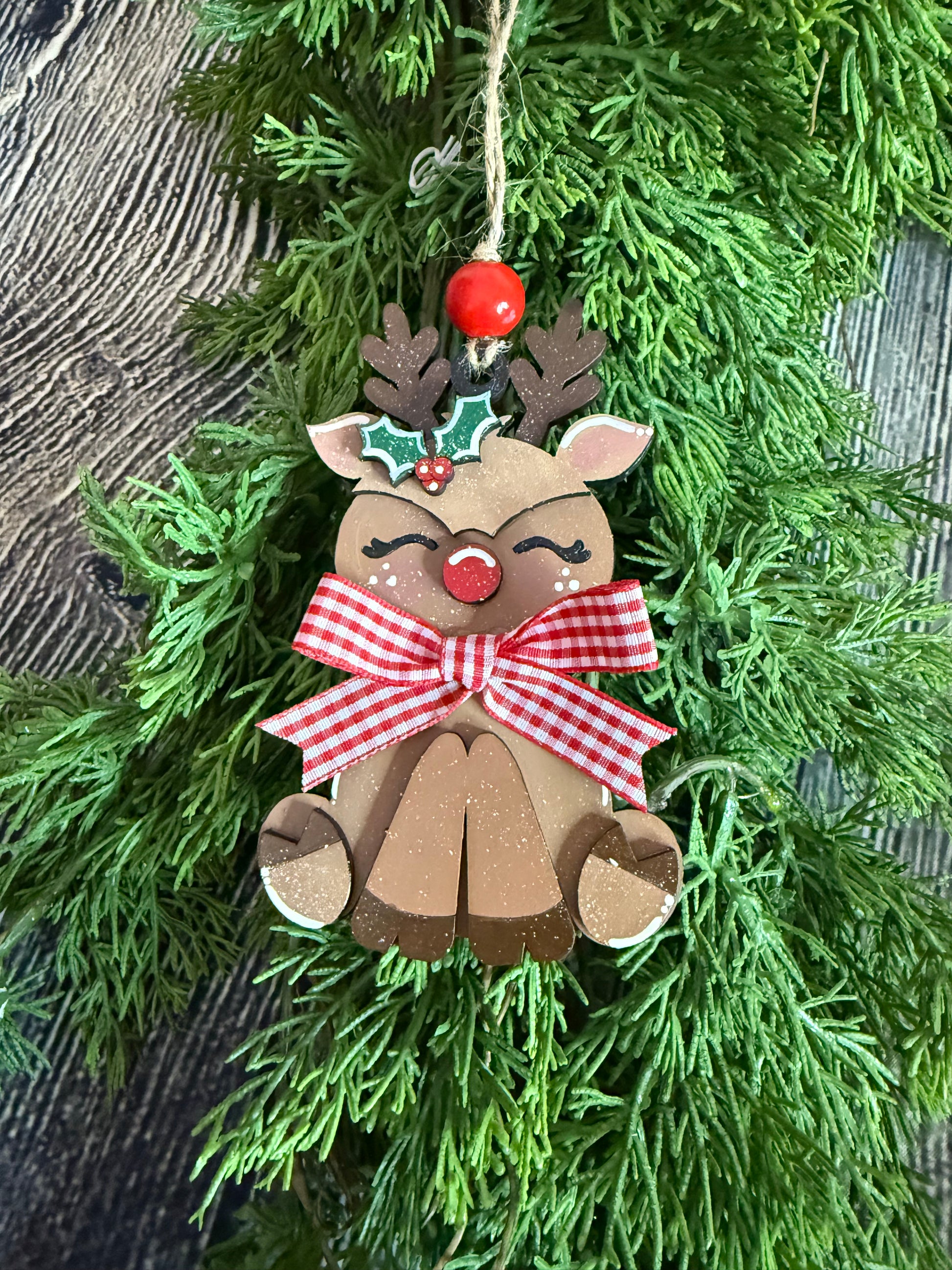 This cute little sitting reindeer is perfect to add to your ornament collection.