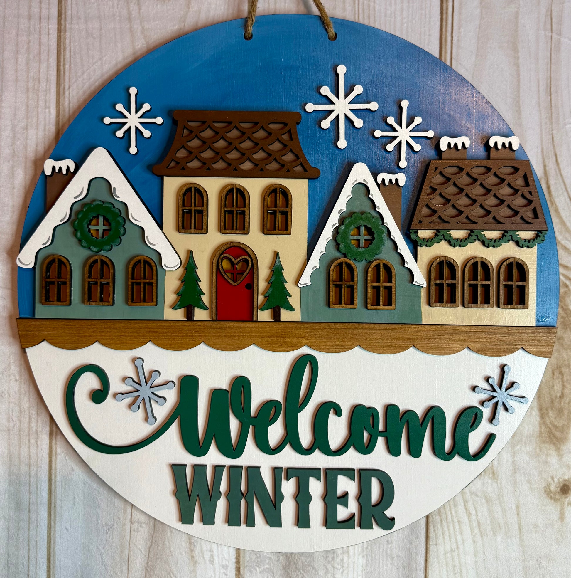 Welcome Winter Houses Wood Door Hanger